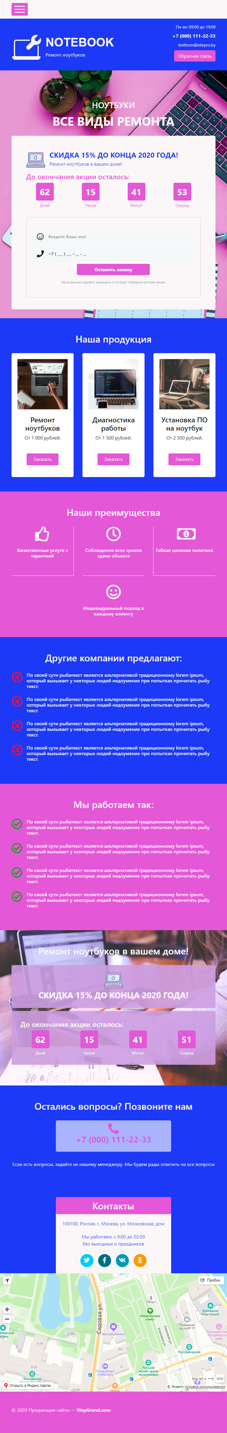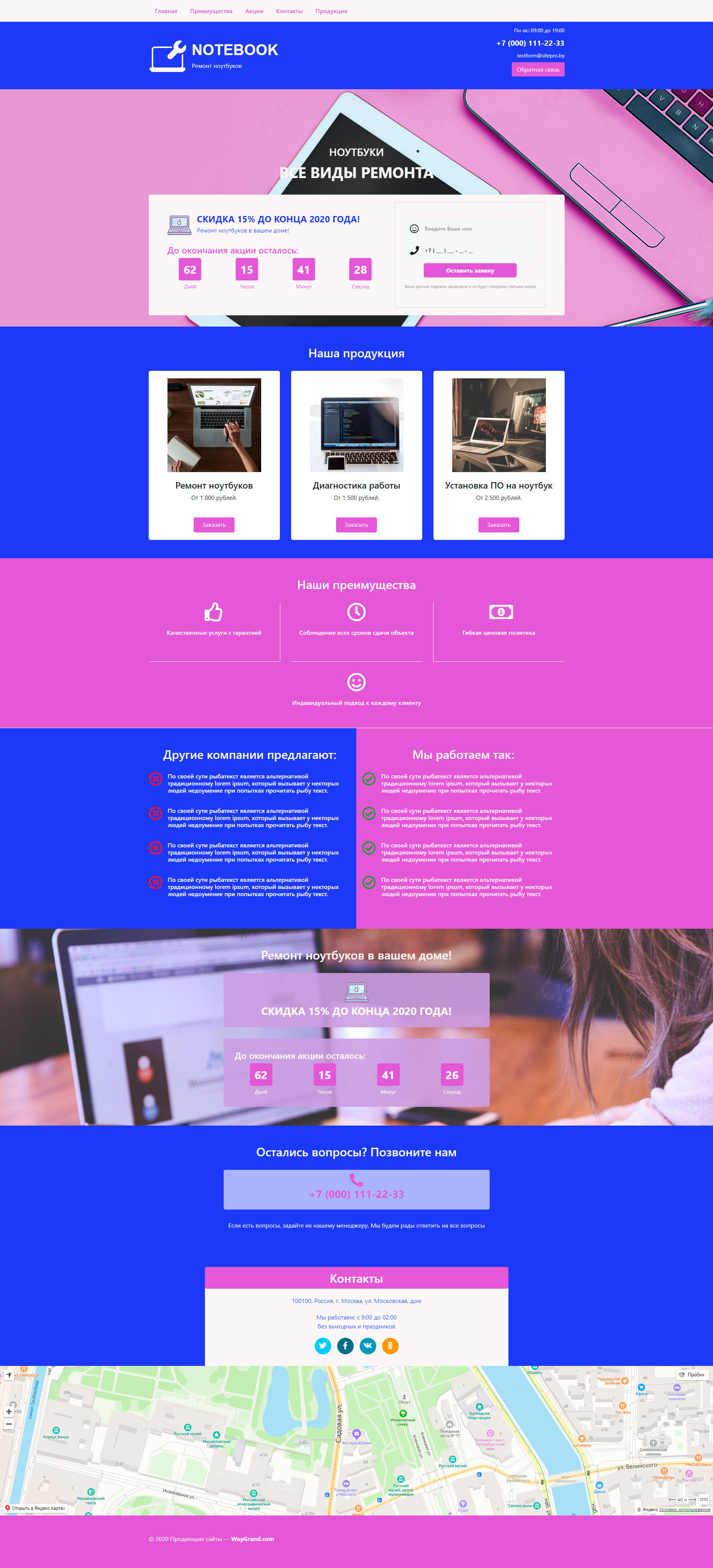 Закажите готовый продающий сайт лендинг #0719201 в Пскове за 1-3 дня «под ключ»: свёрстан, отрисован и готов к рекламе. Тематика шаблона «Ремонт ноутбуков».