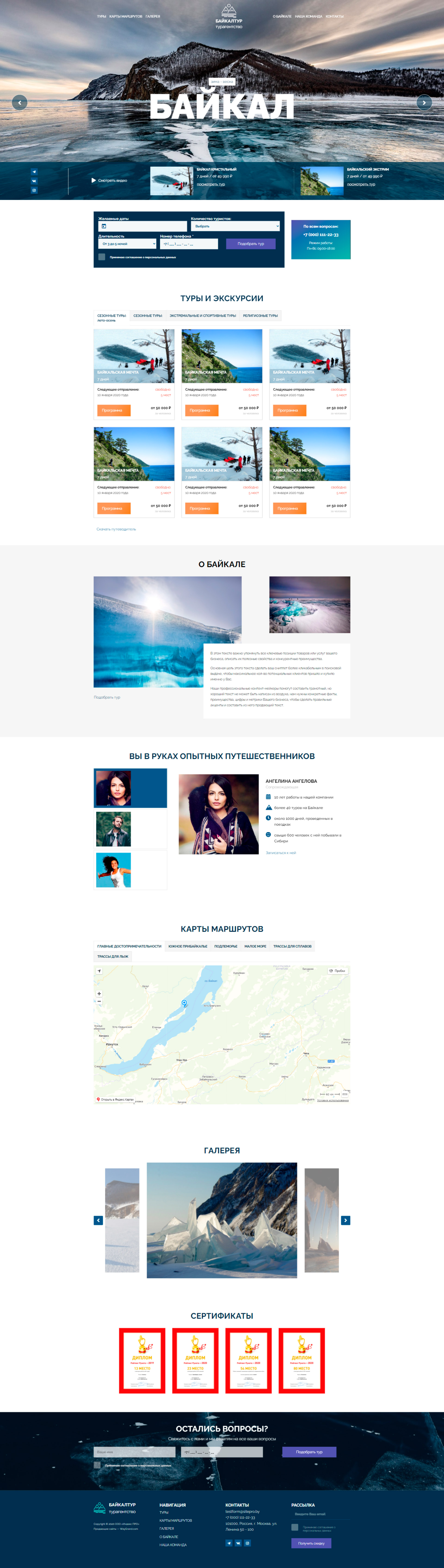 Закажите готовый продающий сайт лендинг #1952202 в Пскове за 1-3 дня «под ключ»: свёрстан, отрисован и готов к рекламе. Тематика шаблона «Байкал ТУР».