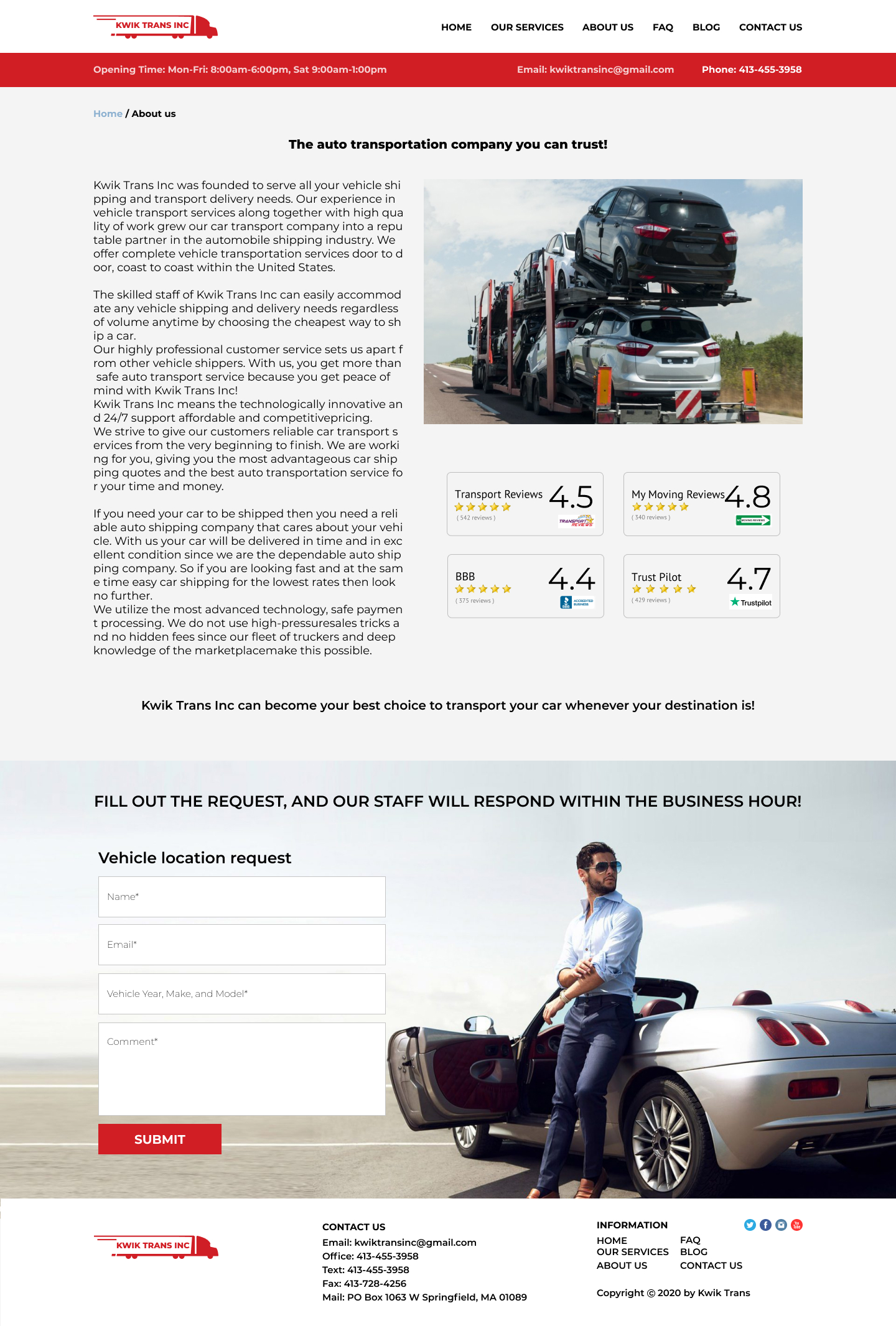 Закажите готовый продающий сайт визитка #223 в Пскове за 5-7 дня «под ключ»: свёрстан, отрисован и готов к рекламе. Тематика шаблона «Safe & Reliable National Auto Transport».